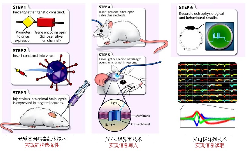 图3. 光遗传学的实验步骤(Buchen L, Nature, 2010, modified)