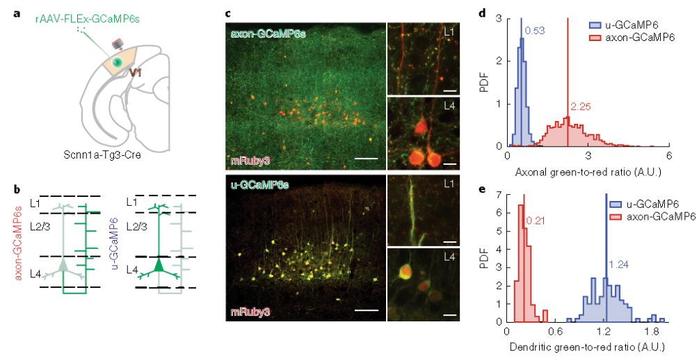 图3.轴突钙成像(Axon-GCaMP6)(Yang Y et al.,Nature communications,2018)