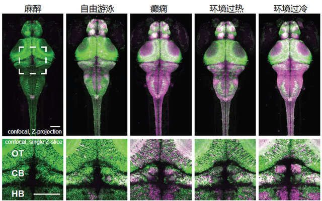图3.在斑马鱼身上验证CaMPARI蛋白的效果,结果显示CaMPARI可以很好地反应斑马鱼的神经活动。