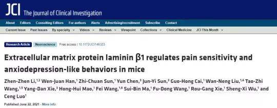 2021年8月2日,空军军医大学基础医学院罗层教授和武胜昔教授团队在国际知名期刊The Journal of Clinical Investigation发表了题为“Extracellular matrix protein laminin β1 regulates pain sensitivity and anxiodepression-like behaviors in mice”研究论文,并受邀发表Video abstract。