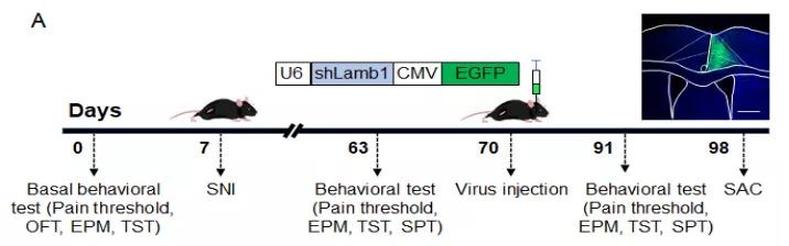 图1 LAMB1在SNI诱致慢性痛伴发焦虑及抑郁样行为小鼠ACC脑区中的变化