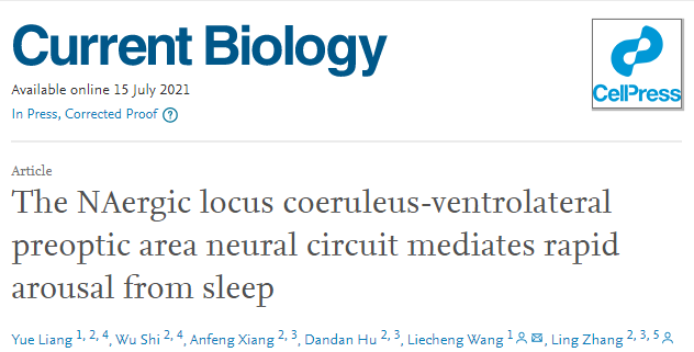 近日,同济大学医学院张玲教授课题组与安徽医科大学王烈成教授课题组合作,在Current Biology期刊在线发表题为“The NAergic locus coeruleus-ventrolateral preoptic area neural circuit mediates rapid arousal from sleep”的最新研究成果。揭示了脑干的蓝斑核(LC)到下丘脑腹外侧视前区(VLPO)的去甲肾上腺素能(NAergic)神经环路的促进觉醒机制。