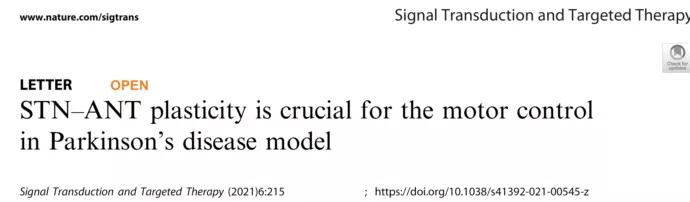 2021年6月9日,北京基础医学研究所认知与脑科学研究中心王以政团队在Signal Transduction and Targeted Therapy 杂志上发表题为“STN–ANT plasticity is crucial for the motor control in Parkinson’s disease model”的研究论文,该研究首次发现STN-丘脑前核(ANT)通路及其可塑性参与调控PD模型鼠运动障碍。