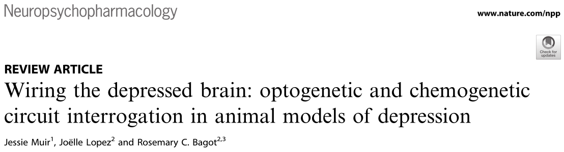 过去十年光遗传学和化学遗传学技术经历了跨越式发展,这两种技术均展现出对细胞活性的强大的控制能力,均能有效而精确地操纵神经元活动。为了对不同类型的神经元和相关环路进行特异性调控,光遗传学设计出各种视蛋白、光敏通道来激活或者抑制细胞活性。而化学遗传学则是通过受体的设计,利用特定药物激活受体DREADDs来调节细胞的活性。与传统药理学手段相比,视蛋白和DREADDs可以大大增强细胞类型的时空调控,可以更精确的解析抑郁症背后的神经环路。然而与光遗传学相比,化学遗传学在研究抑郁症相关的神经环路中的应用一直受到限制。小编在这里给大家推荐Muir J等发表在Neuropsychopharmacology题为“Wiring the depressed brain: optogenetic and chemogenetic circuit interrogation in animal models of depression”的综述文章,作者回顾了这两种技术在抑郁症动物模型相关神经环路中的应用。表明化学遗传学与光遗传学一样,在神经元活性操控中具有重要地位。