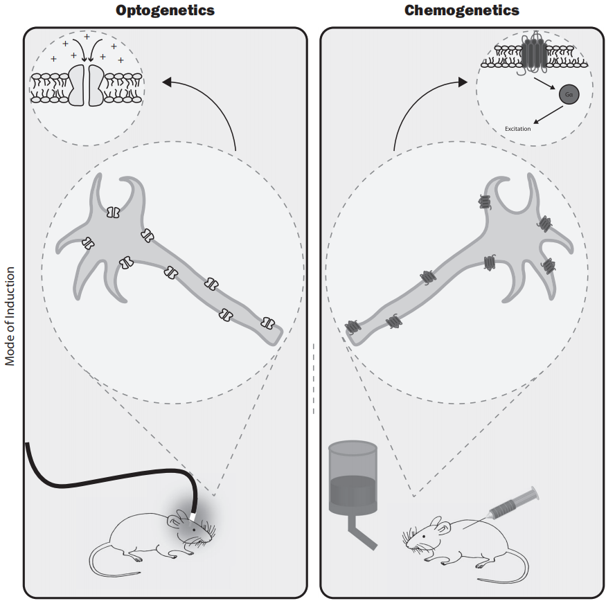 图1. 光遗传学和化学遗传学技术的示意图概述