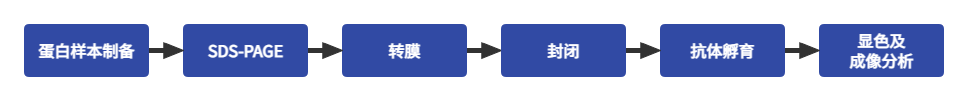 该技术与Southern或Northern杂交方法类似,但采用的是SDS-PAGE凝胶电泳,被检测物是蛋白质,“探针”是抗体,“显色”用标记的二抗。经过PAGE分离的蛋白质样品,转移到固相载体(例如硝酸纤维素薄膜)上,固相载体以非共价键形式吸附蛋白质,且能保持电泳分离的多肽类型及其生物学活性不变。以固相载体上的蛋白质或多肽作为抗原,与对应的抗体起免疫反应,再与酶或同位素标记的第二抗体起反应,经过底物显色或放射自显影以检测电泳分离的特异性目的基因表达的蛋白成分。