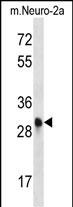 Mouse Cdk1 Antibody (C-term) western blot analysis in mouse Neuro-2a cell line lysates (35ug/lane).This demonstrates the Cdk1 antibody detected the Cdk1 protein (arrow).
