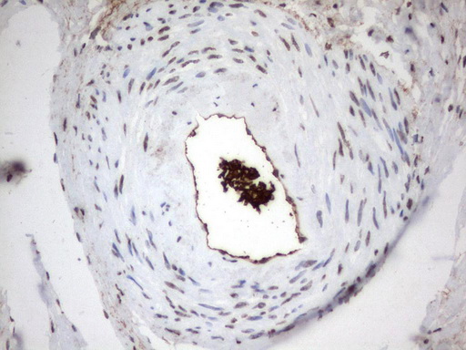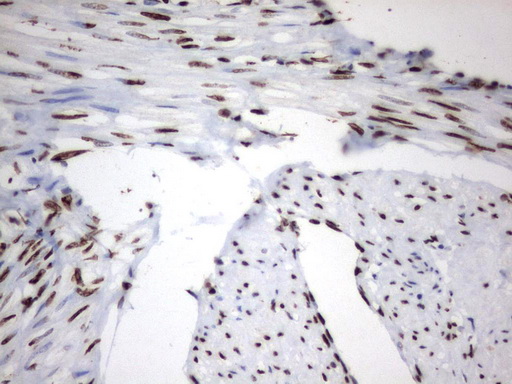 Immunohistochemical staining of paraffin-embedded Human endometrium tissue using anti-MLF1 mouse monoclonal antibody. (BD-PE4505, heat-induced epitope retrieval by 1mM EDTA in 10mM Tris, pH8.0, 120°C for 3min)