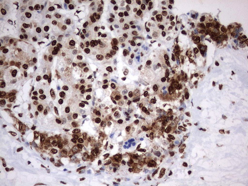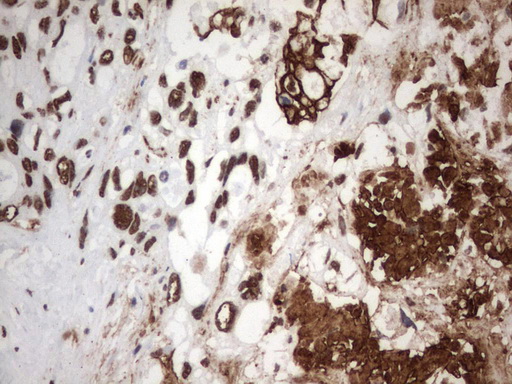 Immunohistochemical staining of paraffin-embedded Adenocarcinoma of Human breast tissue using anti-MLF1 mouse monoclonal antibody. (BD-PE4505, heat-induced epitope retrieval by 1mM EDTA in 10mM Tris, pH8.0, 120°C for 3min)