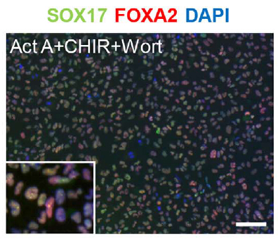 Figure from citation: Immunofluorescence of SOX17 protein level by using anti-SOX17 antibody in human KhES-3 cells.