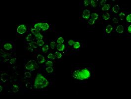 Immunofluorescent staining of HT29 cells using anti-SOX17 mouse monoclonal antibody (BD-PE4507).