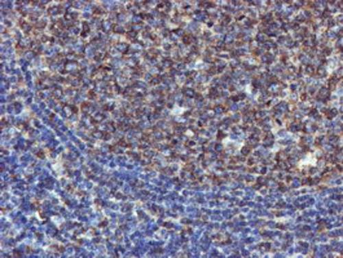 Immunohistochemical staining of paraffin-embedded Human tonsil within the normal limits using anti-TUBAL3 mouse monoclonal antibody. (Heat-induced epitope retrieval by 10mM citric buffer, pH6.0, 100°C for 10min, BD-PE4665)