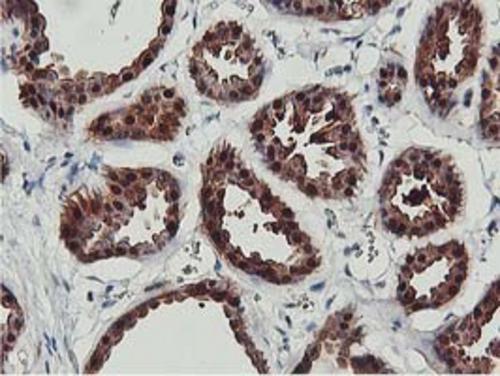 Immunohistochemical staining of paraffin-embedded Human breast tissue within the normal limits using anti-COASY mouse monoclonal antibody. (Heat-induced epitope retrieval by 10mM citric buffer, pH6.0, 100°C for 10min, BD-PE4712)