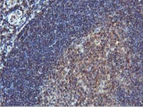Immunohistochemical staining of paraffin-embedded Human tonsil within the normal limits using anti-COASY mouse monoclonal antibody. (Heat-induced epitope retrieval by 10mM citric buffer, pH6.0, 100°C for 10min, BD-PE4712)