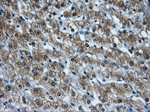 Immunohistochemical staining of paraffin-embedded Kidney tissue within the normal limits using anti-HDAC10mouse monoclonal antibody. (Heat-induced epitope retrieval by 10mM citric buffer, pH6.0, 100°C for 10min, BD-PE4800, Dilution 1:50)