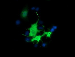 Anti-BEST3 mouse monoclonal antibody (BD-PE5287) immunofluorescent staining of COS7 cells transiently transfected by pCMV6-ENTRY BEST3 .