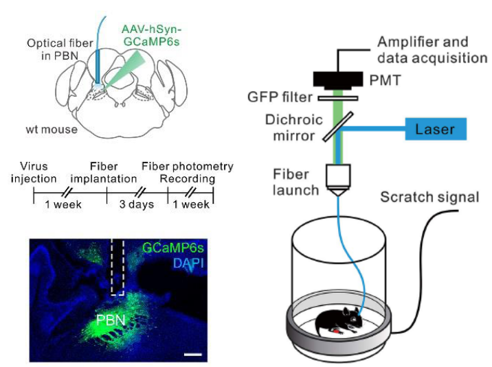 ①客户发表文章:Science.(IF=47.728).Mu D,et.al.(2017).A central neural circuit for itch sensation.[腺相关病毒,痒,光遗传,化学遗传,钙成像]