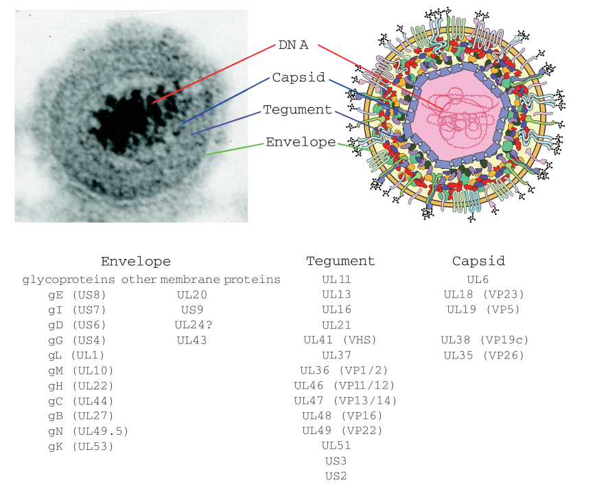 图1 PRV病毒粒子结构图(Pomeranz LE et al.Microbiol Mol Biol Rev. 2005.)