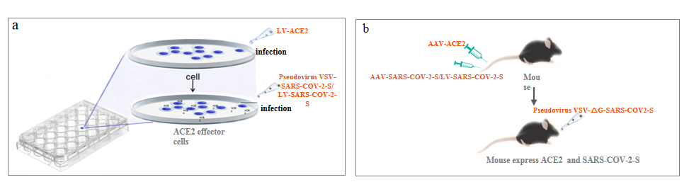 假病毒(Pseudovirus)是指目的病毒能够整合另外一种不同种类病毒的囊膜糖蛋白,从而形成的具有外源性病毒的囊膜,而基因组保持着目的病毒本身基因组特性的病毒,它可携带荧光素酶/荧光蛋白等报告基因,具有高效、稳定、安全,可长期稳定制备,应用范围广等特点。目前,慢病毒、逆转录病毒、水泡性口炎病毒、腺病毒等都已被开发为假病毒在体内实验中广泛使用。假病毒已广泛用于病毒感染机制研究、中和抗体及抗病毒药物筛选和评价、血清中和抗体检测以及疫苗效价评估、病毒检测的标准品等领域。基于 SARS-CoV-2 假病毒载体(Pseudovirus VSV/LV-S)已被用于研究 SARS-CoV-2入侵人体细胞的具体机制。