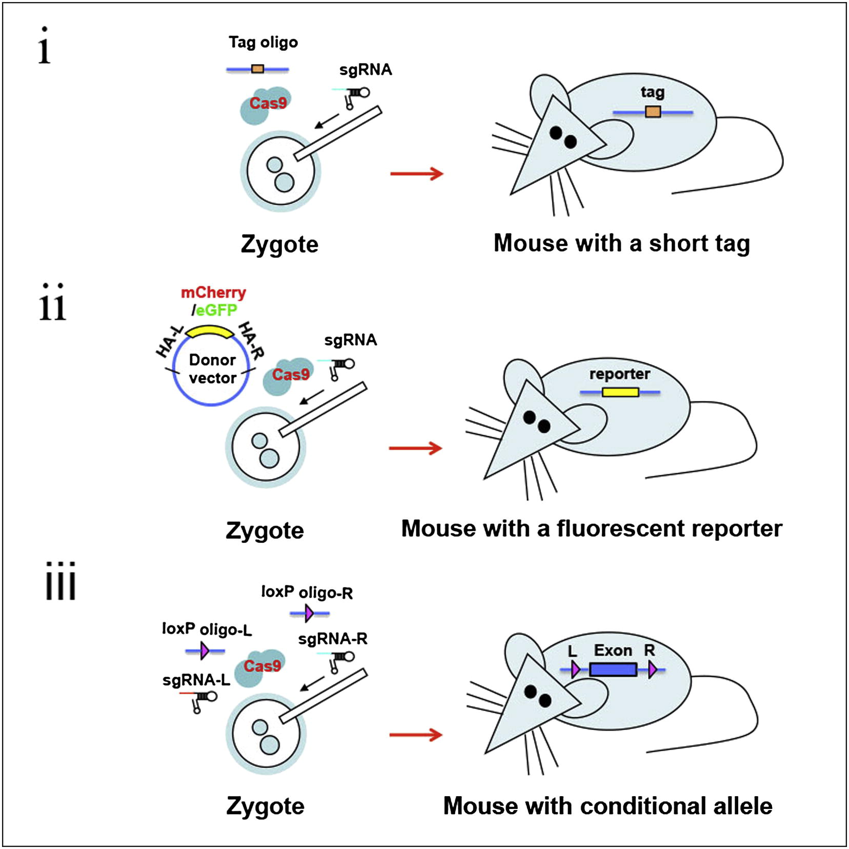 图2.利用CRISPR/Cas9同源重组构建基因敲入小鼠。