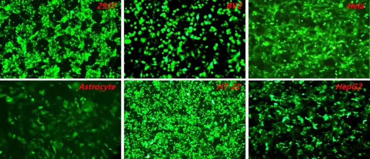 ● 腺病毒感染能力强,转导效率高,是体外难感染细胞最佳选择;对于细胞实验在感染后36-48小时会出现表达高峰;对于动物实验则在5天左右即达到表达高峰,表达效果可维持1-3周左右。