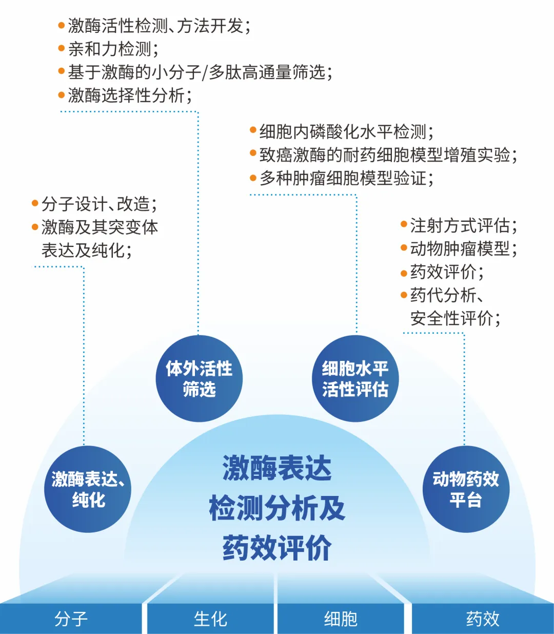 枢密科技致力于为全球学术界、制药公司和生物技术企业的科学家提供临床前一站式激酶靶点开发及药物筛选研究服务。枢密科技拥有全球领先的One-Bac 4.0规模化蛋白制备专利技术平台,工艺开发及cGMP级蛋白生产平台。团队现已开发出超50种高生物活性激酶及相关蛋白突变体,也可提供定制化激酶表达、生化活性筛选及体内/外药效评价一站式服务。围绕这一关键酶家族开展科学探索,推动药物发现、疾病治疗,守护人类健康福祉。