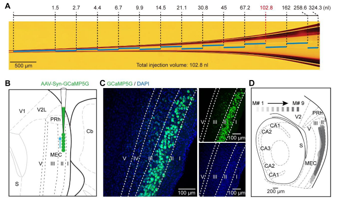 病毒滴度:rAAV2/1: 5 × 1012 VG/mL;rAAV2/9-DIO-hChR2:1.2 × 1013 VG/mL;rAAV2/9-DIO-GCaMP6s:0.5 × 1012 VG/mL
