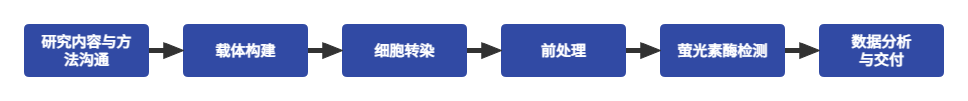 萤光素酶(Luciferase)报告基因系统是以荧光素(luciferin)为底物来检测荧光素酶活性的一种报告系统。该系统中,荧光素酶催化其底物荧光素氧化,并将该反应的化学能几乎100%转变为光能,因而是一种高效的生物发光系统(bioluminescence)。由于大多数哺乳动物体内无内源性表达荧光素酶或其底物荧光素,且该反应灵敏度高、线性范围宽,反应迅速、易于定量,因而是理想的报告基因。由于单报告基因检测结果易受细胞数量、转染效率、细胞状态、裂解效率等因素的影响,现普遍采用双荧光素酶报告基因检测法。在双荧光素酶报告基因测试中,将共转染的“对照”报告基因会作为内对照,为试验提供一基准线。实验报告基因经过内参照的处理可以减小细胞活性和转染效率对实验的影响,因此双报告系统减少了外部干扰,使得实验数据更可信。萤火虫荧光素酶和海肾荧光素酶是常用的两种报告基因,实验中报告基因和对照基因的酶没有种源同源性,萤火虫荧光素酶和海肾荧光素酶对应不同的反应底物,反应中没有任何的交叉干扰。