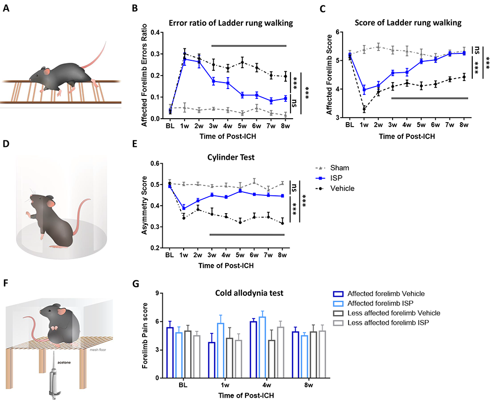 图1 ISP促进脑出血后长期感觉运动行为恢复