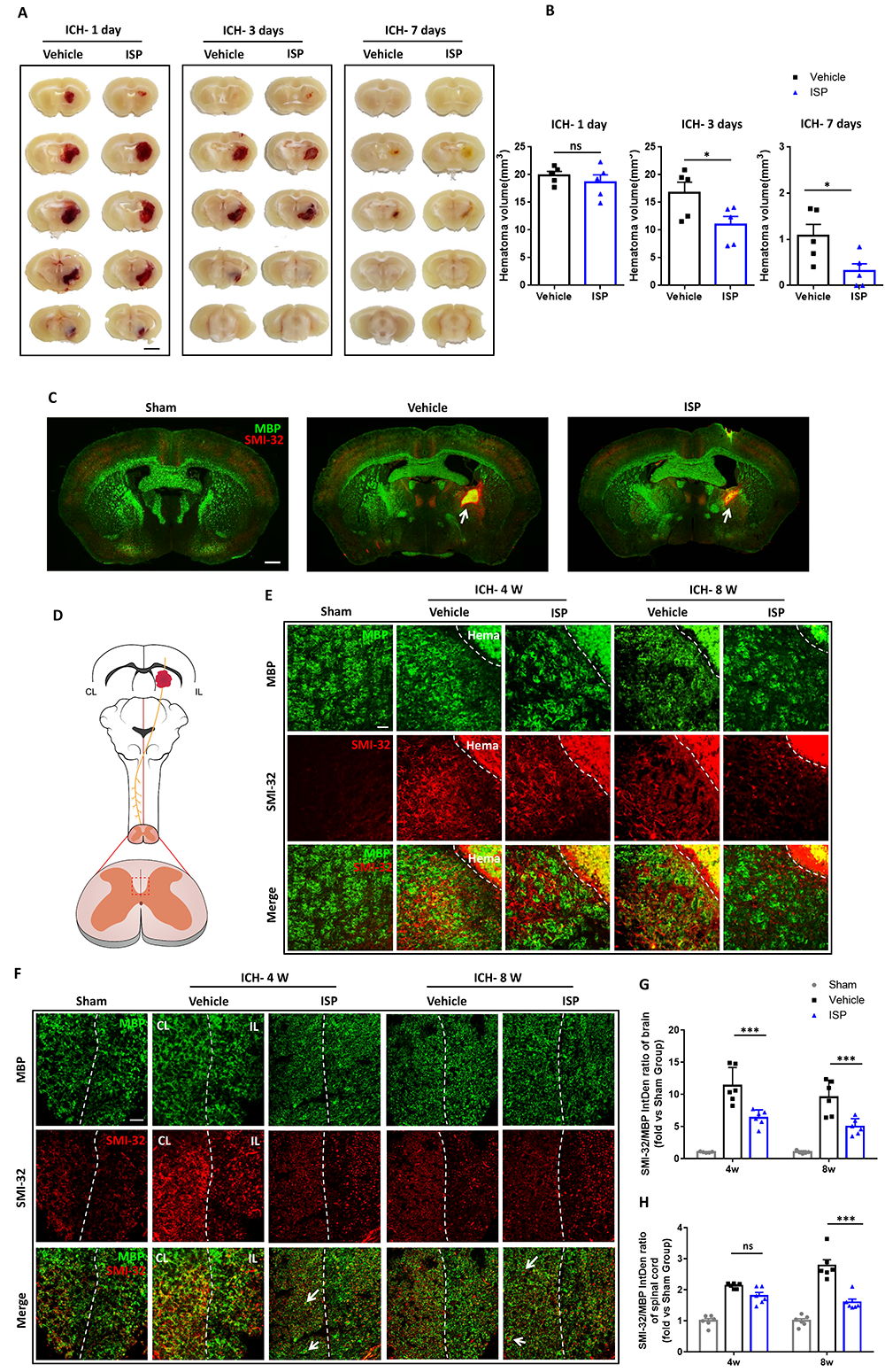 图3 ISP治疗长期改善ICH后大脑和颈段脊髓白质完整性(图源:Yao M et al., J Neuroinflammation, 2022)