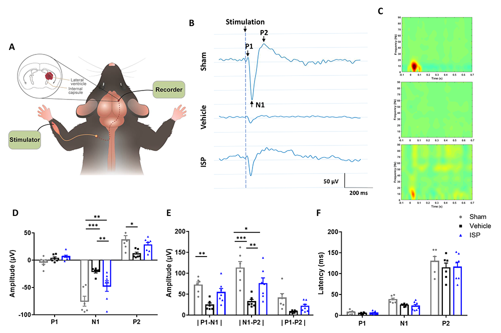 图5 ICH后第8周SSEP显示,ISP给药改善神经传导(图源:Yao M et al., J Neuroinflammation, 2022)