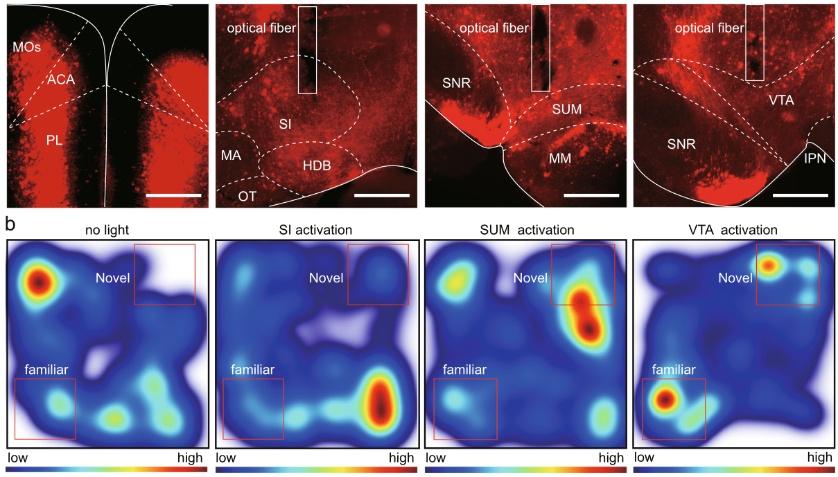 本文研究人员运用病毒示踪技术结合荧光显微光学切片断层成像技术(fMOST)、光遗传学和化学遗传学技术,解析出mPFC脑区ET神经元在小鼠的物体识别记忆中的环路结构,揭示了HDB-MAChAT→mPFCET→SUM神经环路的激活对AD模型小鼠物体识别记忆的改善作用。本研究阐明一条新的内侧前额叶皮层环路在AD模型短期记忆中的作用机制,为AD相关记忆障碍的临床治疗提供了新的干预方向。