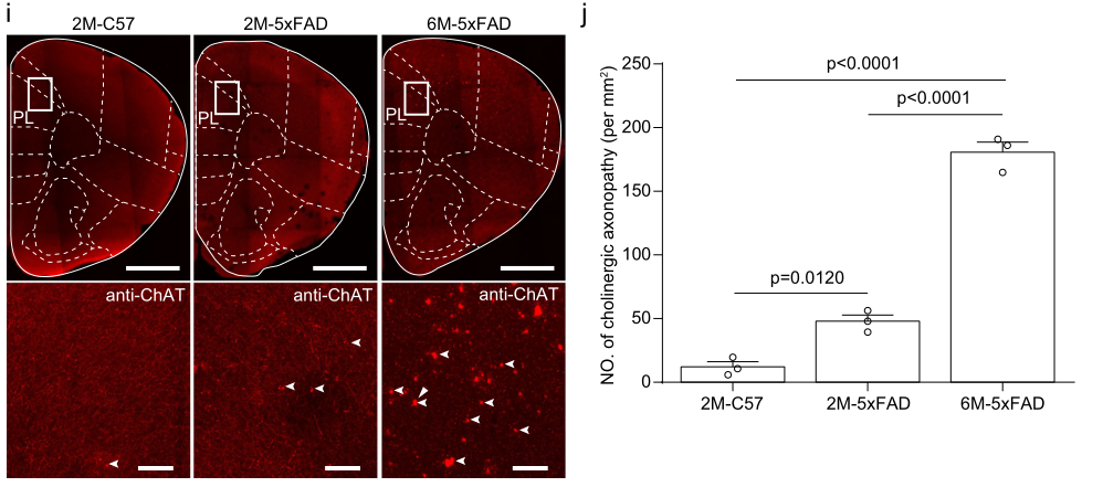 阿尔兹海默症(AD)是一种以记忆障碍和认知损伤为特征的神经退行性疾病,其中短期记忆障碍是AD最显著的临床特征。研究表明在AD患者和AD模型小鼠中的短期记忆障碍与前额叶皮层(PFC)脑区功能不足密切相关,形态学研究发现AD患者和AD模型小鼠(如tau转基因小鼠和5×FAD小鼠)PFC脑区锥体神经元树突棘密度、树突复杂性和胞体体积显著减小。据报道AD患者中支配PFC脑区的基底前脑胆碱能神经元退化,而在小鼠PFC脑区中注射M1型胆碱能受体激动剂能有效提高动物的认知能力。皮层第5层锥体神经元主要是端脑外侧束投射神经元(ET神经元),ET神经元在短期工作记忆中发挥关键作用,但是,目前尚不清楚PFC中ET神经元功能障碍与AD短期记忆损害之间的具体机制。