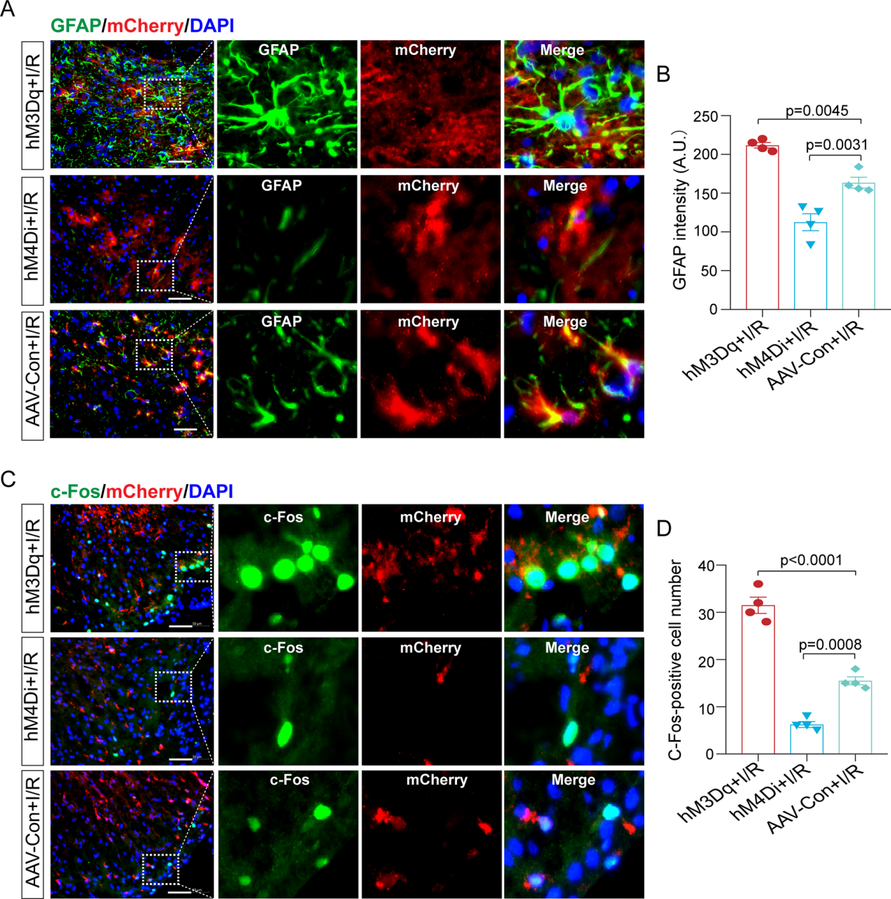 2. Gq-和Gi-DREADD在I/R损伤期间操纵脊髓星形胶质细胞活化