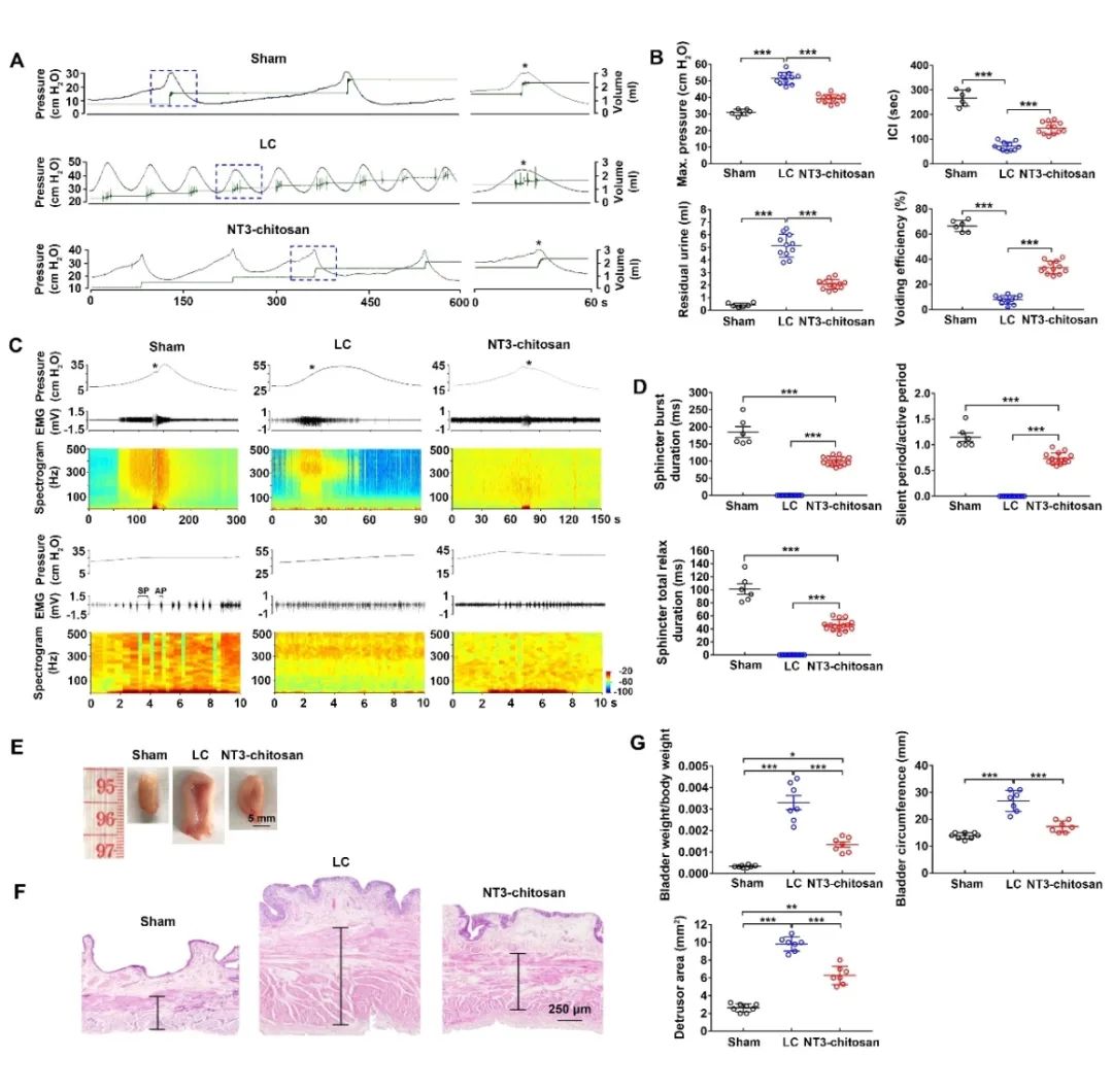 图2.NT3-壳聚糖改善脊髓损伤大鼠神经源性下尿路功能障碍