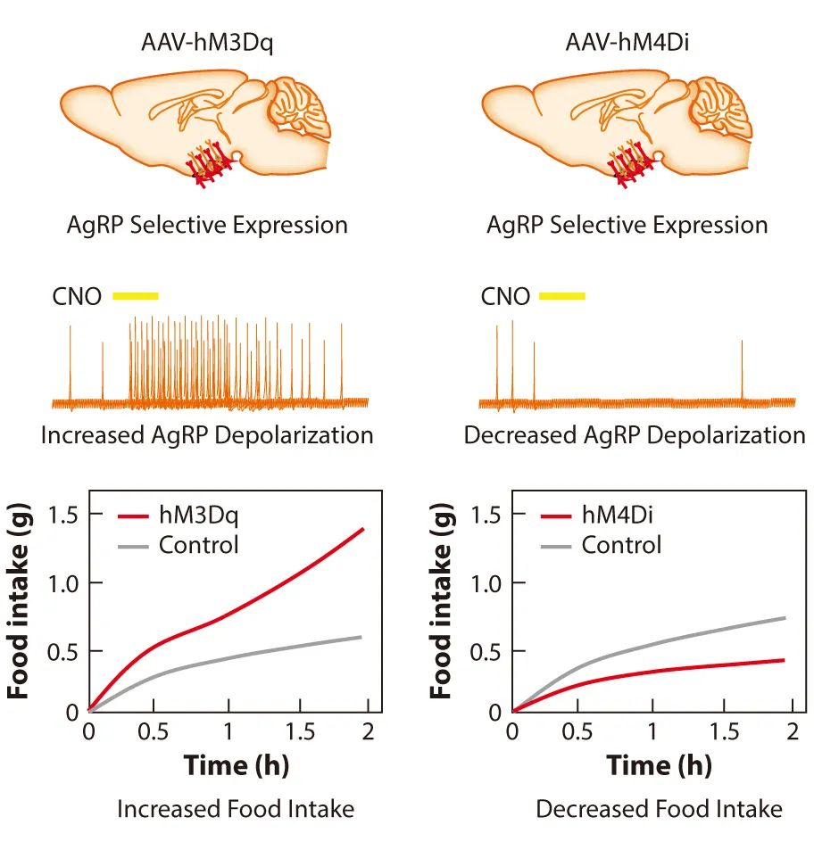 参考文献:Urban DJ, Roth BL. DREADDs (designer receptors exclusively activated by designer drugs): chemogenetic tools with therapeutic utility. Annu Rev Pharmacol Toxicol. 2015;55:399-417.