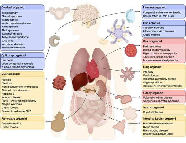 目前3D类器官培养技术已经成功培养出大量具有部分关键生理结构和功能的类组织器官,比如:皮肤、心脏、肾脏、肝脏、肺、小肠、大脑、胃、胰腺、内耳等。不仅包括正常器官组织类器官,还有相应肿瘤组织类器官。