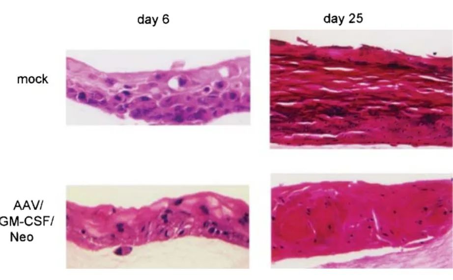 本研究证明携带粒细胞-巨噬细胞集落刺激因子(GM-CSF)、人乳头瘤病毒E6或绿色荧光蛋白(GFP)转基因的rAAV载体可以转导离体培养的原代人角质形成细胞。通过使用器官型上皮筏培养系统,作者进一步证明,这些转导的细胞可用于形成转基因阳性重组皮肤。