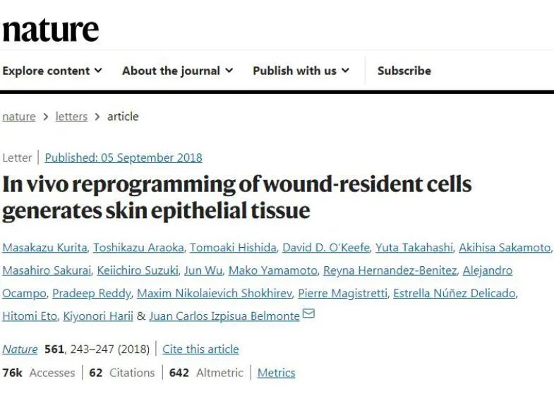 表皮是身体的最外层,多层表皮由基底层1(即基底角质形成细胞)内的干细胞和祖细胞维持。修复受损皮肤的一个重要步骤是从邻近表皮迁移角质形成细胞到伤口处以促进再上皮化。对于大伤口,这个过程效率很低。为了改善患者的预后,必须开发更快速有效的再生表皮覆盖方法,最好是非手术干预。近年来细胞重编程研究有了迅猛进展,于是作者推断伤口驻留细胞也可拥有被重新编程为表皮祖细胞的命运,进而产生新的上皮细胞,最终促进皮肤溃疡表面的从头上皮化。