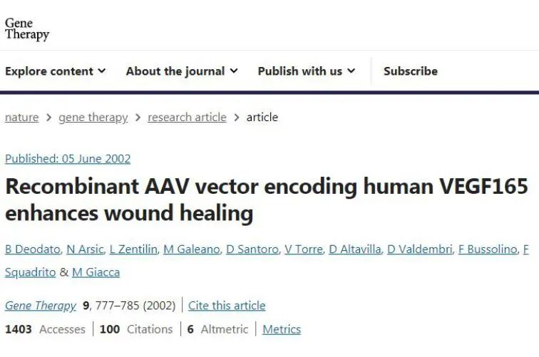 案例一:通过编码人血管内皮生长因子165(VEGF165)的重组AAV载体促进伤口愈合