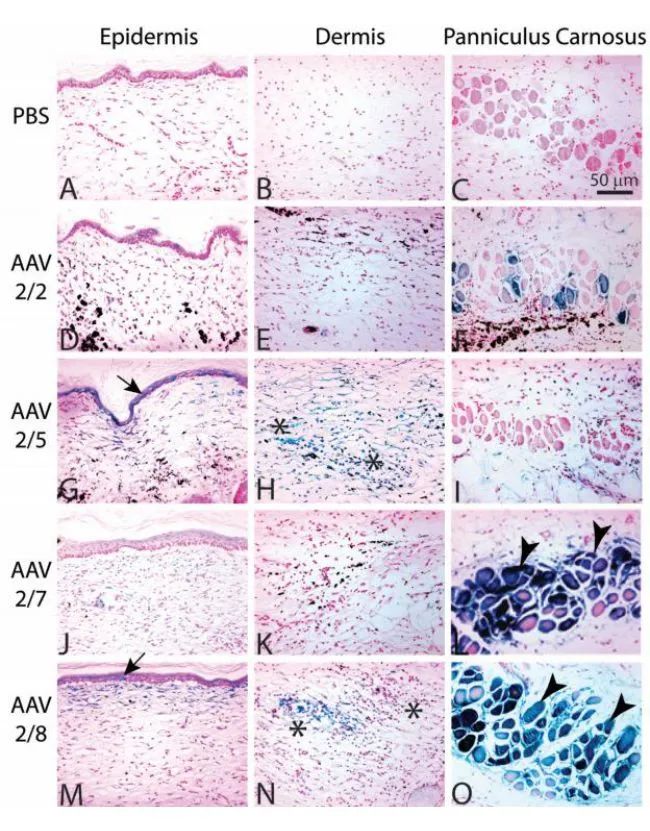 AAV感染皮肤组织的方式主要通过皮内注射,也有通过静脉注射方式感染。