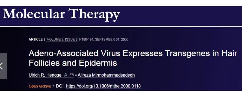 腺相关病毒2型(AAV2)是皮肤基因治疗的有效载体,因为皮肤是AAV的天然宿主组织,在其中它作为一种自主性细小病毒发挥作用。