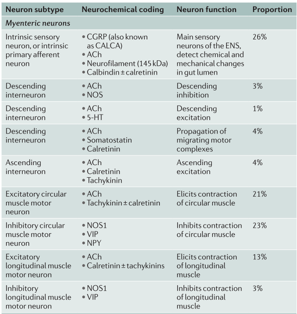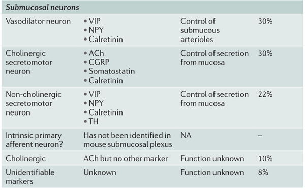表2. 小鼠小肠中肠神经元的神经化学编码