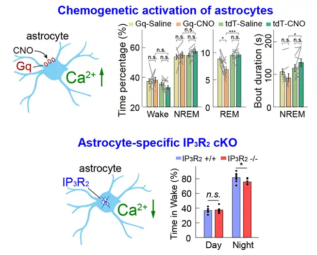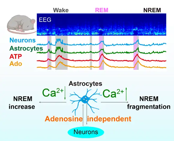2023年2月7日,《Cell Discovery》期刊在线发表题为《Adenosine-Independent Regulation of the Sleep-Wake Cycle by Astrocyte Activity》的研究论文,该研究由中国科学院脑科学与智能技术卓越创新中心(神经科学研究所)徐敏研究员组和上海交通大学医学院张思宇研究员组合作共同完成。该研究采用光纤记录、化学遗传、基因敲除和脑片电生理等技术,结合新型腺苷/ATP荧光探针,发现基底前脑星形胶质细胞钙活动可双向调控睡眠-觉醒行为,且该过程不依赖于胞外腺苷信号。该研究为理解星形胶质细胞在睡眠-觉醒中的作用及机制提供了新的线索。