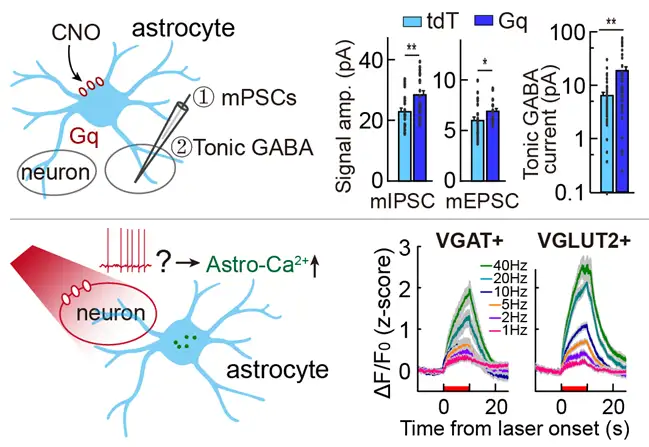 图8 | 星形胶质细胞活动与神经活动之间的互作