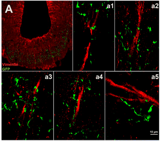 正中隆起(ME)位于第三脑室底部,介于下丘脑与垂体之间 ,作为一种特殊的室周器官,可作为血脑屏障(BBB)渗透性位点,充当脑-外周系统交流的重要门户。此外该脑区的神经元轴突末端将分泌的肽类物质和递质释放到门脉毛细血管系统中(1),也可以将血液相关的信号传输到大脑相关区域(2)。ME脑区中的毛细血管网被下丘脑室管膜胶质细胞末端(tanycyte)包裹着,tanycyte是一种特殊的室管膜细胞。