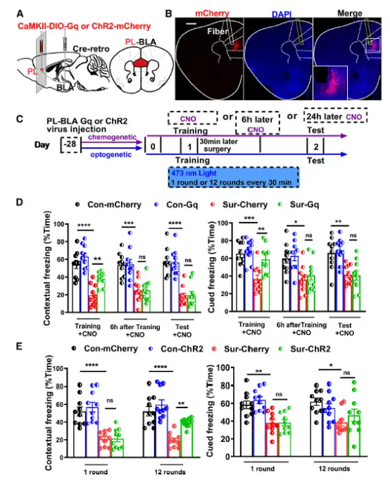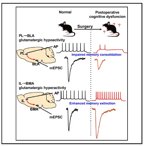 本研究揭示了麻醉和手术对记忆各阶段的影响,明确了PLGlu-BLA环路和ILGlu-BMA环路在正常小鼠和POCD小鼠记忆不同阶段的作用。为进一步预防和治疗POCD提供新的研究思路和干预途径。