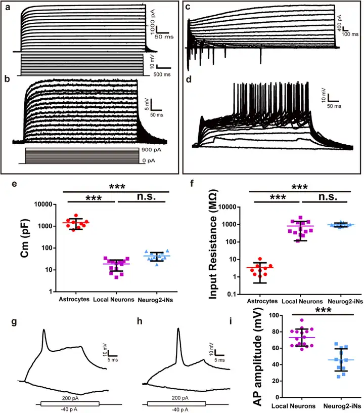 图3. Neurog2-iN细胞表现成熟电生理特性
