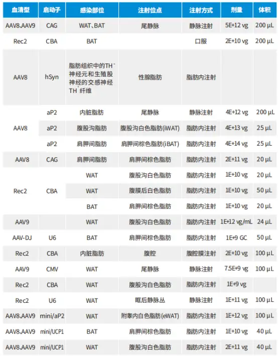 案例1:AAV在成年小鼠体内脂肪组织中介导的基因工程