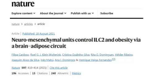[4]Cardoso F, Klein Wolterink RGJ, et al. Neuro-mesenchymal units control ILC2 and obesity via a brain-adipose circuit. Nature. 2021 Sep;597(7876):410-414